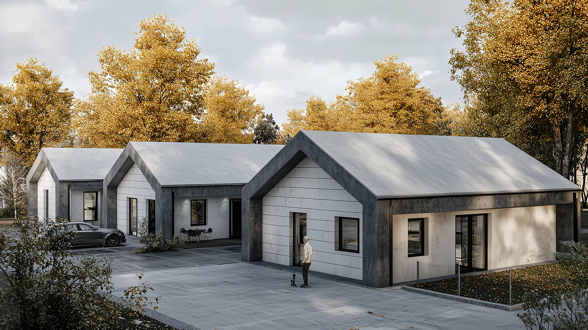 Słoneczny Zakątek to wyjątkowe osiedle 9 całorocznych domków do 75 m², tworzonych z myślą o tych, którzy szukają ciszy, przestrzeni i bliskości natury. Położone w spokojnej, zielonej okolicy – tuż przy lesie, w otoczeniu tras rowerowych i sielskich krajobrazów – stworzy miejsce, w którym można złapać oddech… i zacząć życie na nowo.